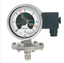 開關電接點(報警用電子式電接點)對可根據儀表的指針位置接通和關斷電氣控制電路。開關電接點在全量程范圍內可調(參見DIN 16085)。通常情況下,電接點都安裝在表盤下面,只有少數是安裝在表盤上面。儀器指針(實際值指針)可在整個量程范圍內自由旋轉,與設定無關。